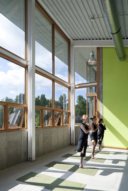 The Omega Center for Sustainable Living (OCSL) is a purposeful building and site, designed to clean water, return the clean water to the local systems, and educate users about the process. The design team selected engineered biological wastewater treatment system technologies to clean the water using the earth, plants and sunlight. The entire building and water process use site-harvested renewable energy achieving a net-zero energy system. To achieve this goal the facility had to be free of waste (volume, material, energy), organized, and carefully tuned to harvest solar energy for passive heating and lighting, using the entire mass for thermal comfort. The resultant design's simplicity and elegance suits its purpose well.