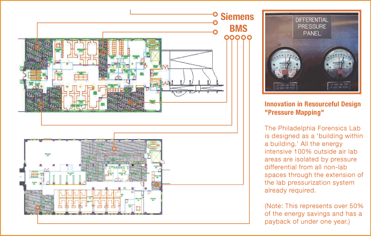 The Siemens building management system key to pulling off the high level of system cohesion and particularly fume hood performance. Although we had firm agreement that this particular system and the three-year maintenance contract would be through Siemens, an unrelated incident of corruption within the bidding procedures of the City of Philadelphia had the effect of “blowing up” this agreement. We were told that the project would be bid with multiple contractors and that we were required to accept the lowest bid. The project manager continued to stand by our recommendations, however, and we were successful in getting the Siemens system. The lesson to take away from this is that any new field (sustainability being only one) has few seasoned players, and those limits can easily unseat a year's work or undercut a key project driver.