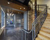 Lastly, to encourage this synergy, the design provides a light filled, open wood staircase that connects these organizations, inviting people to walk between the floors in lieu of taking the elevator.