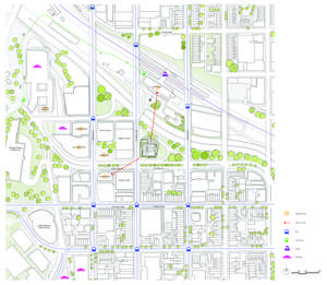 With the proximity of the site to Baltimore’s principal train station, Penn Station; at the terminus of one of Baltimore’s great urban thoroughfares, and immediately adjacent to the Jones Falls Expressway, this building creates an important and highly visible threshold to the campus and the City, and demonstrates the commitment of the University of Baltimore to the on-going renewal and development of the city. The competition-winning design for the new home of the law school was to substitute a variety of random sites around the University campus and a 1980s era law school building on another site. On the actual project site, the new building would replace what was a former surface parking lot.