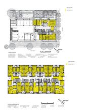 On the ground floor, the footprint for the required parking has been minimized in order to concentrate the communal uses and support services and link them to a sunny garden courtyard. A high level of transparency at the ground floor enhances security, mitigates senior isolation and strengthens a connection to the community.