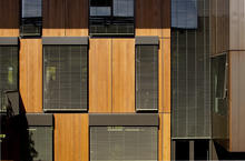 View of the courtyard. - Photo Credit: Jeremy BittermannSometimes good urbanism and energy efficiency can work against each other. Early on, the design team chose to align the building to the street grid--which is oriented 40 degrees off true north--in order to be good neighbors and affirm that sustainable buildings can “fit in.” The task was then set: if ALL direct sunlight could be kept out of southwest-facing spaces and extra attention was paid to glare control, the energy penalty would be kept to less than 5 percent as compared to an optimally oriented building.