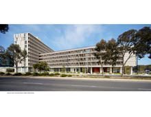 Three apartment buildings are arranged in a C-shape around a courtyard that creates a new social zone and unites it with the existing 1960s Fleet Residences to the east. They adopt elements from the classic campus buildings; exterior walkways, repetitive sun control elements, and a warm color palette, but are firmly rooted in a 21st century aesthetic that unites form and performance. Great lengths were taken to construct the buildings with high quality, cast-in-place white concrete to visually tie them to the existing architecture.